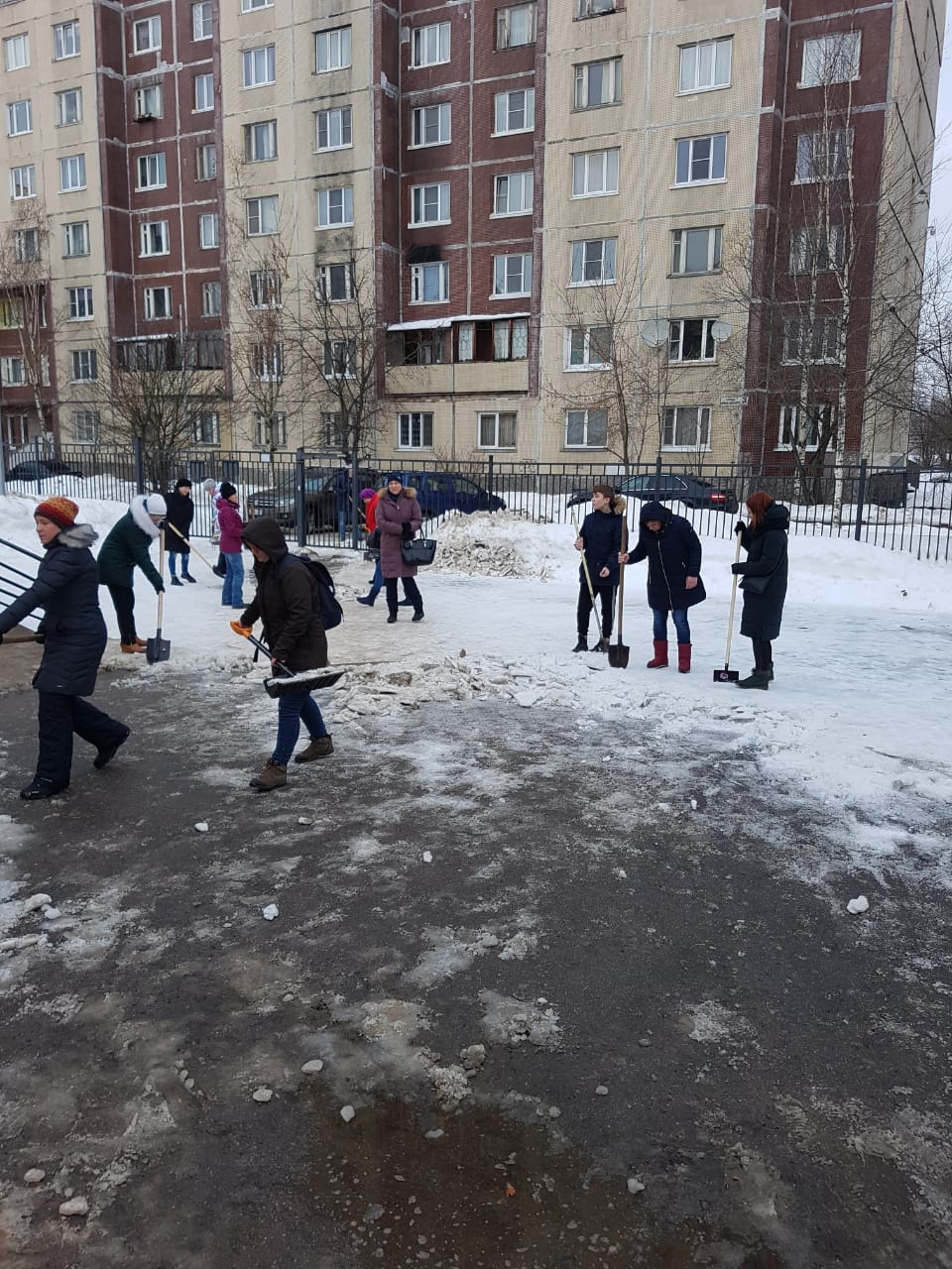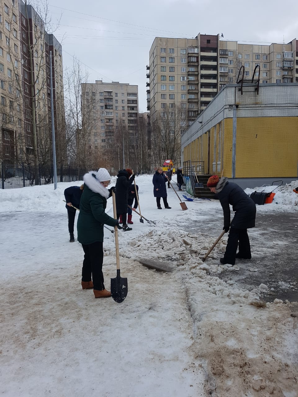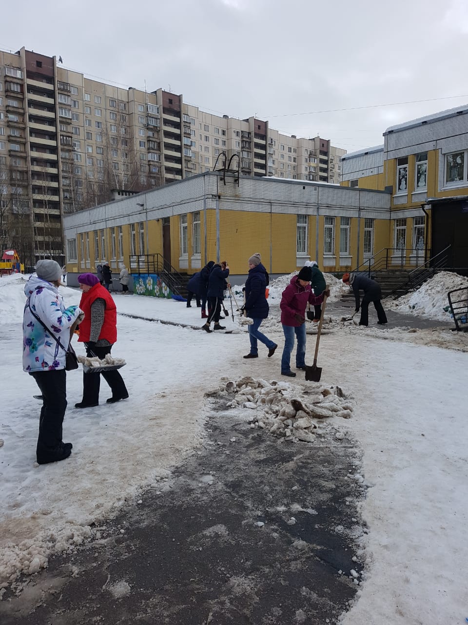 Работники детского сада поддержали инициативу ио губернатора Беглова по уборке снега на территории своего учреждения.