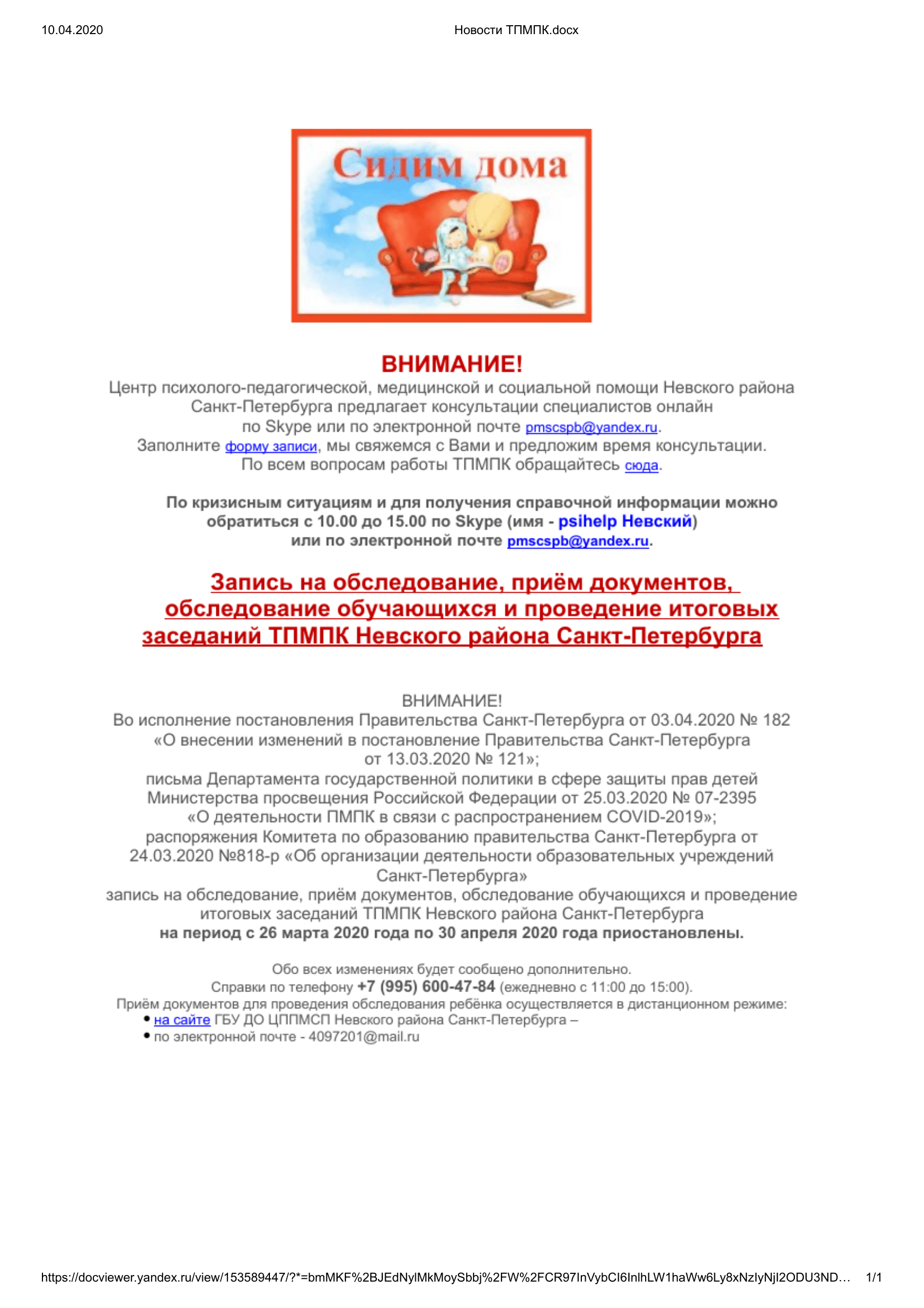 По всем вопросам работы ТПМПК обращайтесь сюда.